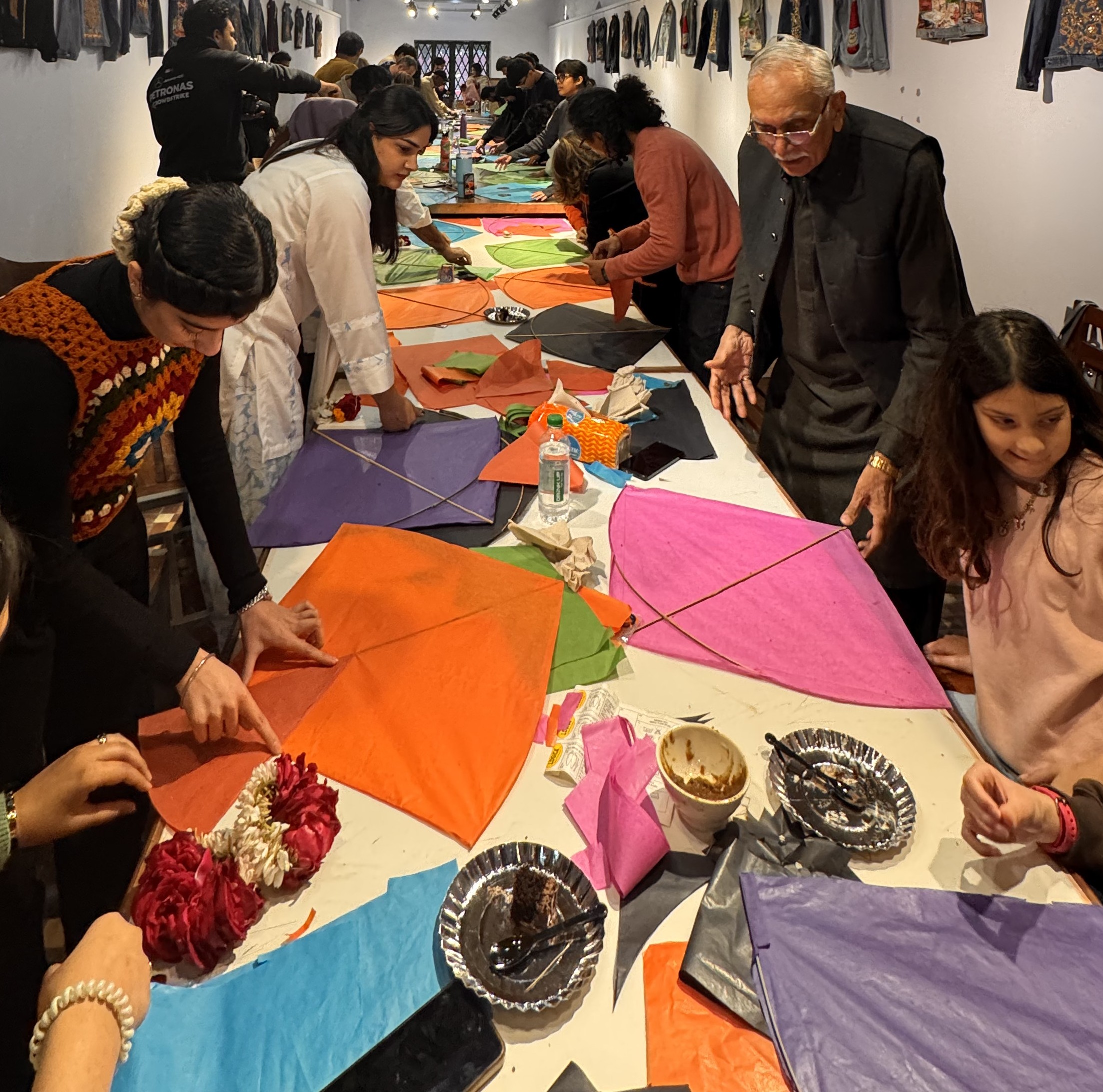 Led by master instructors Javed Bhatti and Saleem Ullah, participants were introduced to the traditional art of kite making—from understanding different types of kites to learning how they’re built, balanced, and flown. Everyone was given their own materials, guided step by step, and taught how to fly kites safely (a big win). The vibe? Fun, interactive, hands-on, and genuinely wholesome. There was laughter, curiosity, a little trial and error, and a lot of quiet pride as kites slowly took shape.